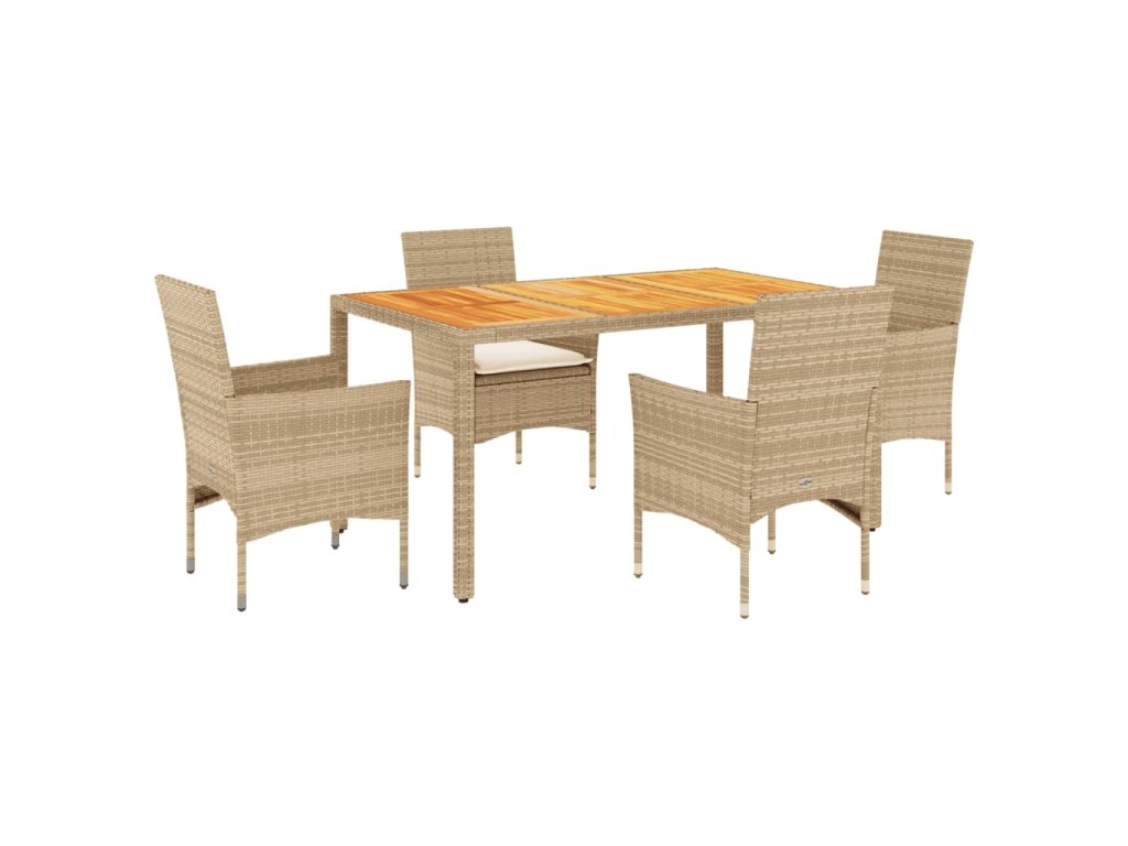 vidaXL 5-dielna záhradná súprava s vankúšmi béžová polyratan a akácia