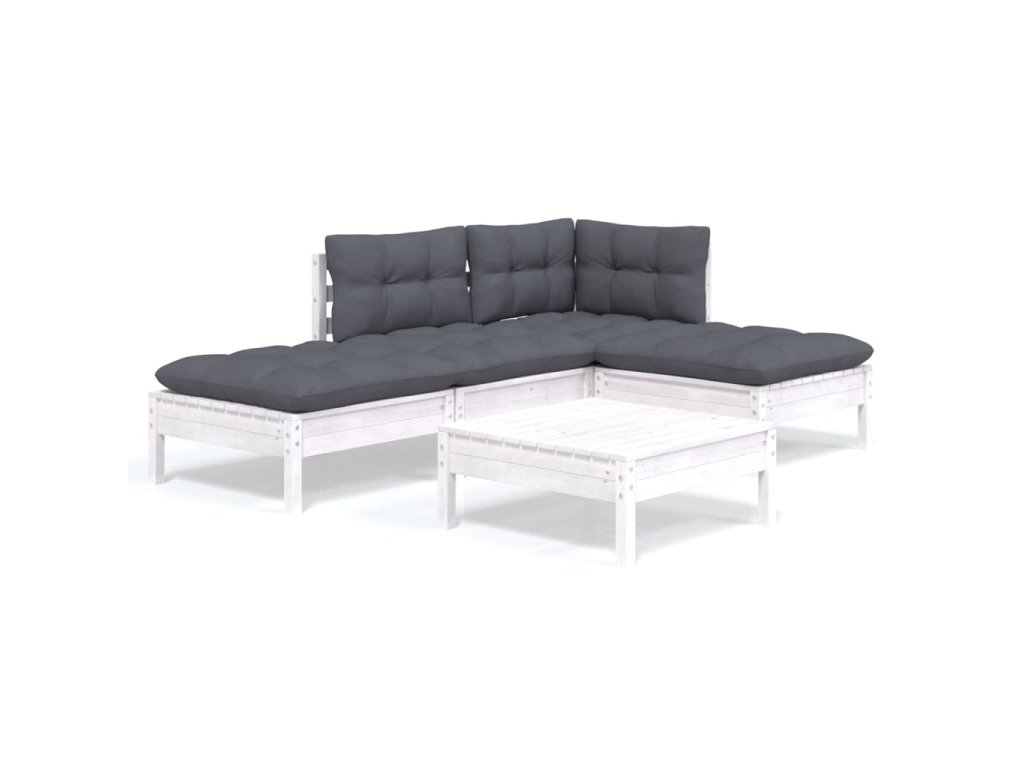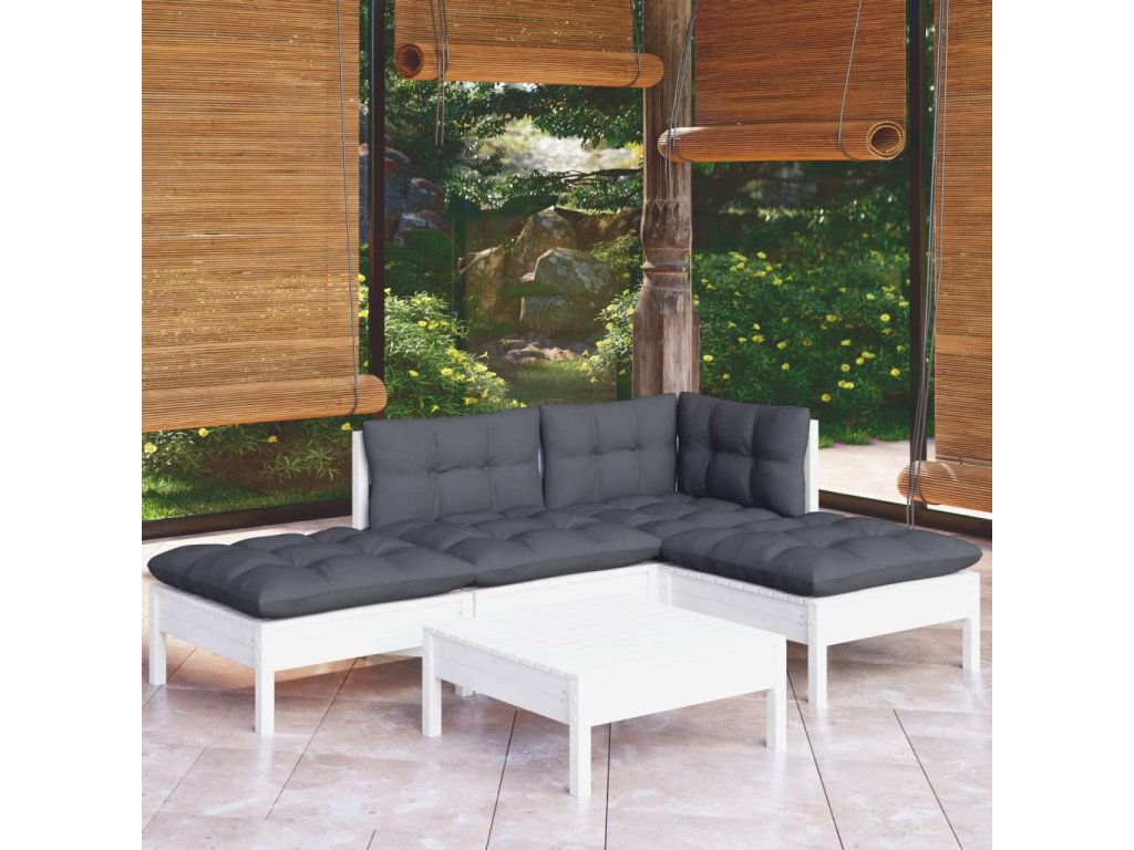 vidaXL 5-dielna záhradná súprava s vankúšmi biela borovicové drevo
