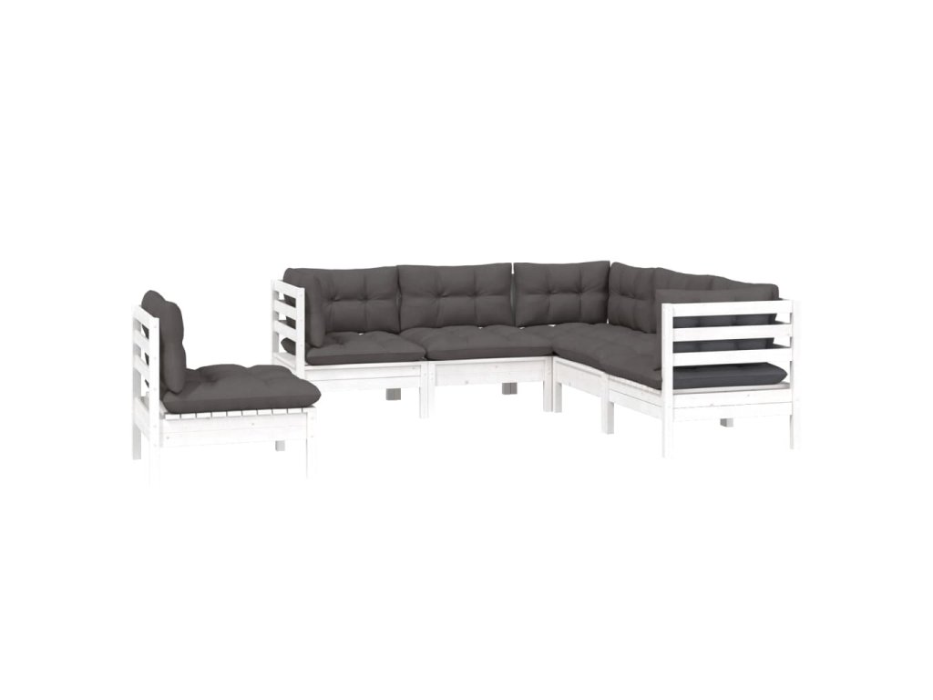 vidaXL 5-dielna záhradná súprava s vankúšmi biela borovicový masív