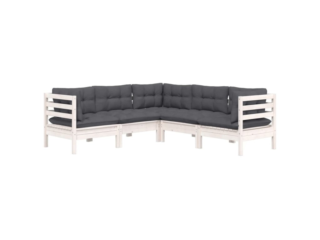 vidaXL 5-dielna záhradná súprava s vankúšmi biela borovicový masív