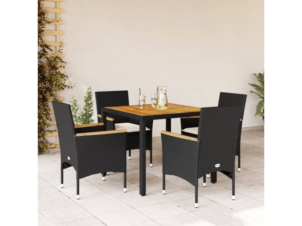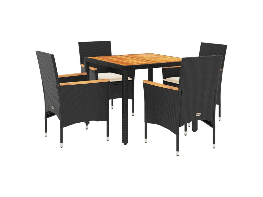 vidaXL 5-dielna záhradná súprava s vankúšmi čierna polyratan a akácia