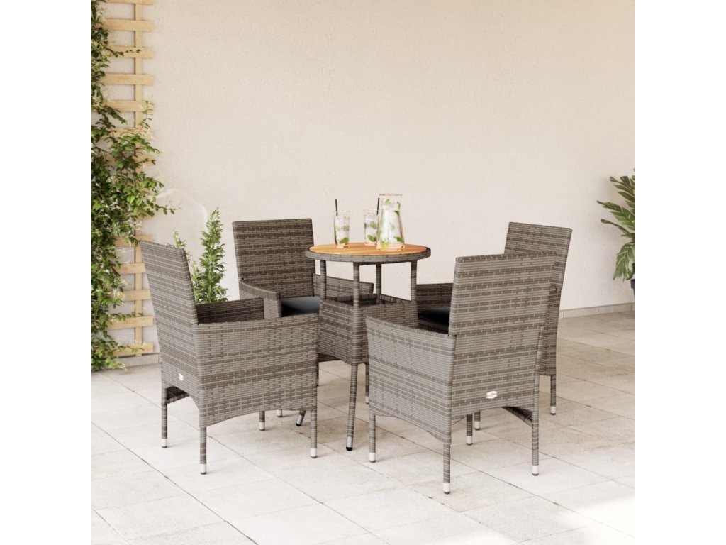 vidaXL 5-dielna záhradná súprava s vankúšmi sivá polyratan a akácia