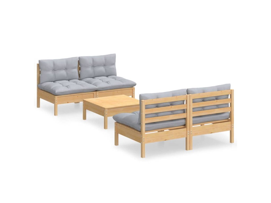 vidaXL 5-dielna záhradná súprava so sivými vankúšmi borovica