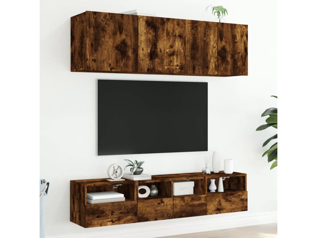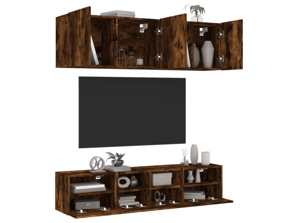 vidaXL 5-dielne TV nástenné skrinky dymový dub kompozitné drevo