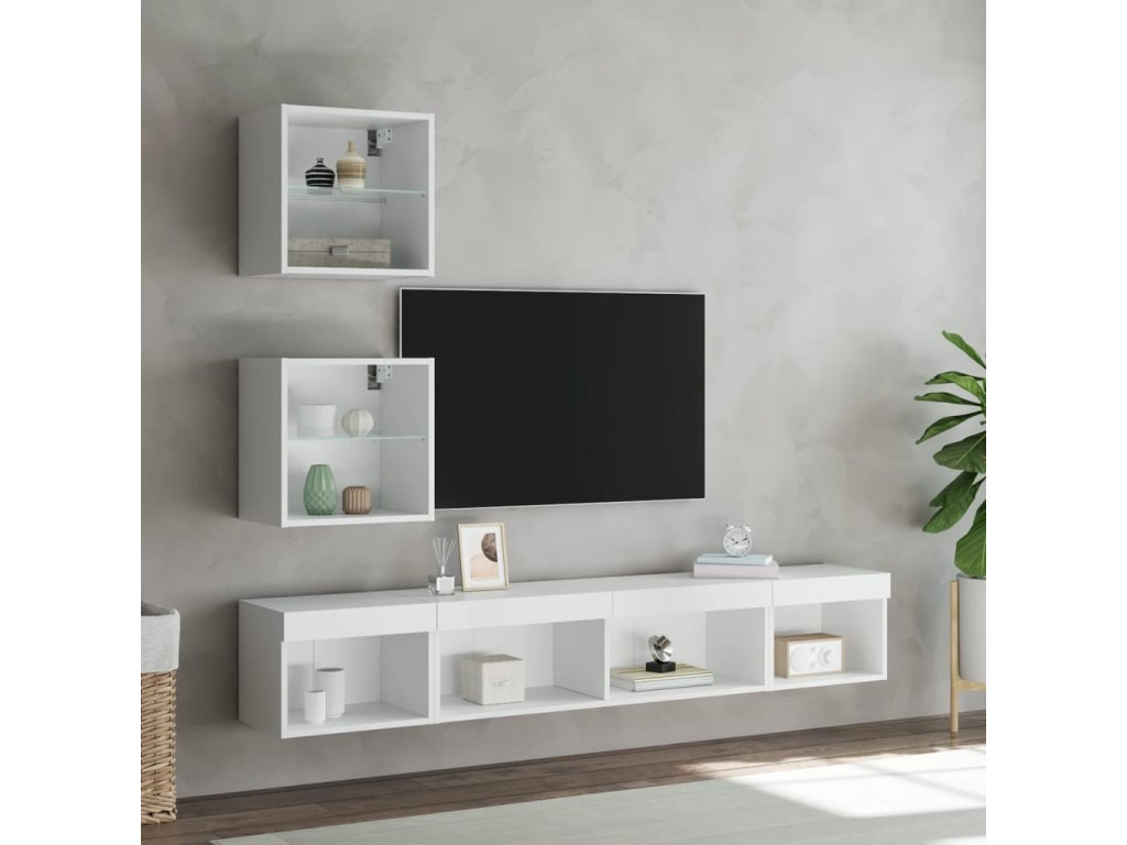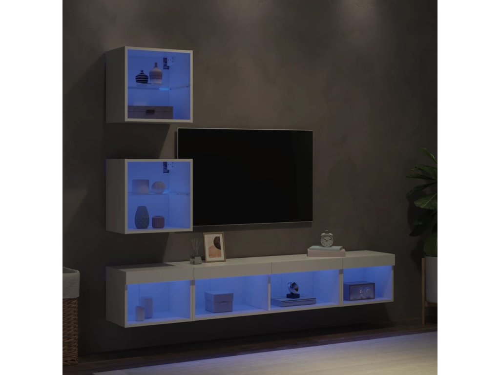 vidaXL 5-dielne TV nástenné skrinky s LED biele kompozitné drevo