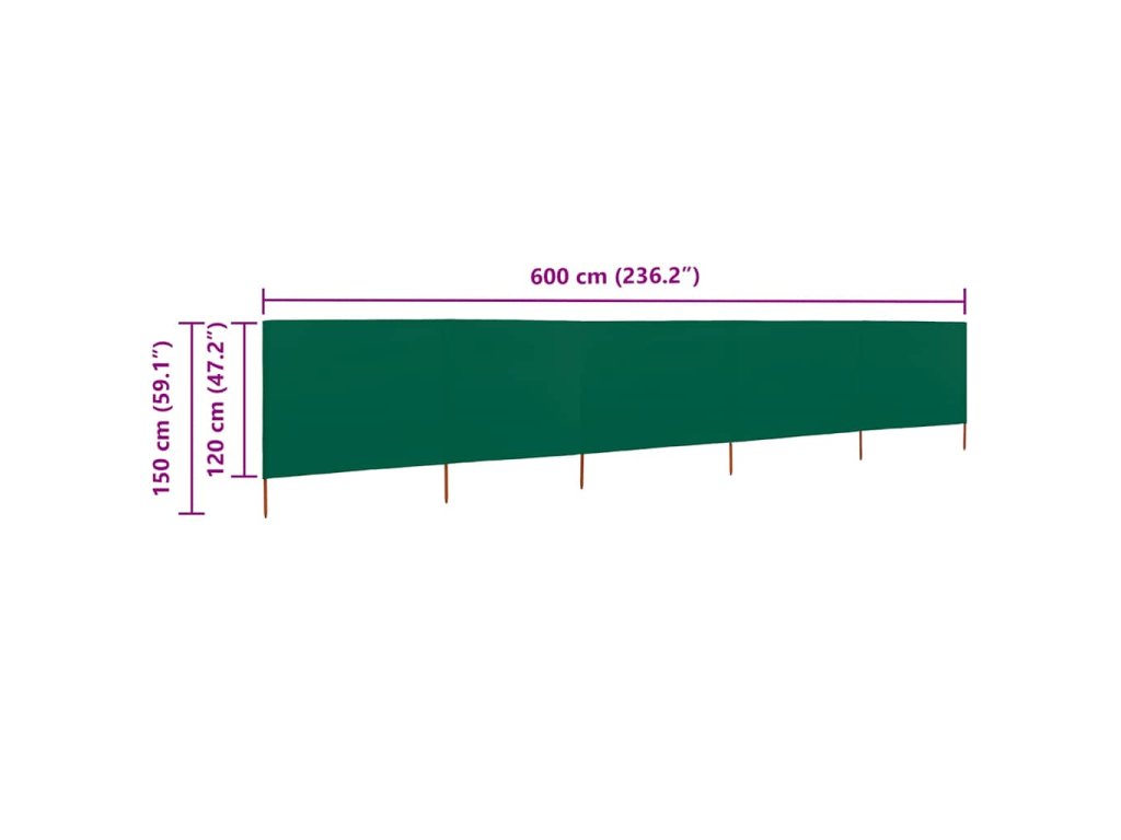 vidaXL 5-panelová zábrana proti vetru látková 600x120 cm zelená