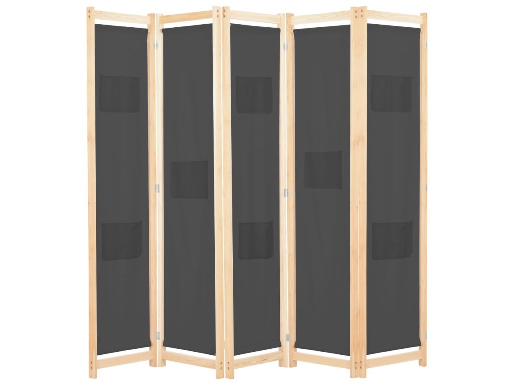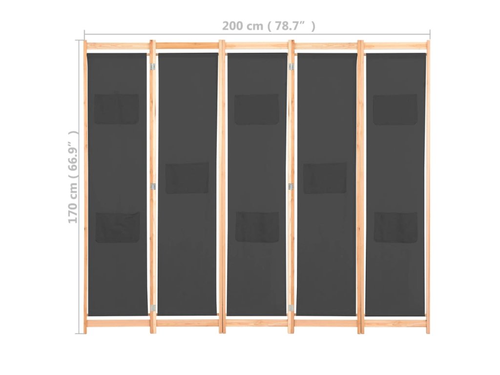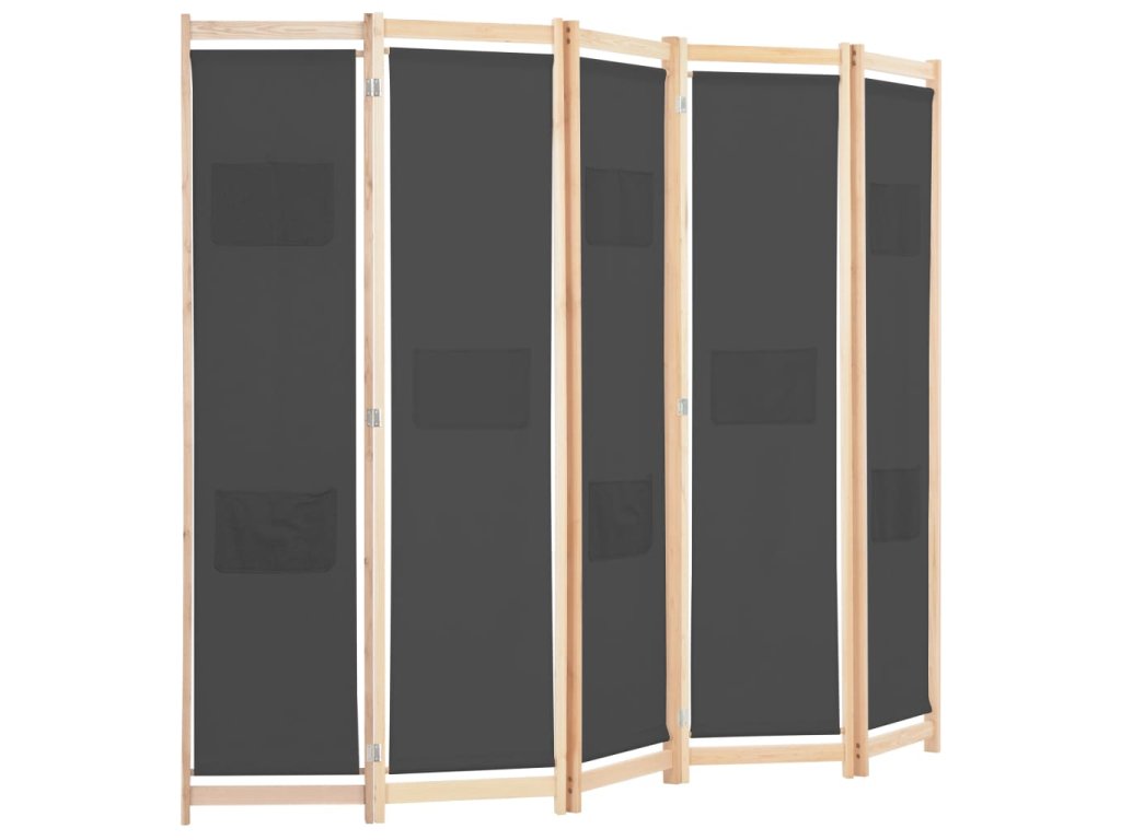 vidaXL 5-panelový paraván sivý 200x170x4 cm látkový