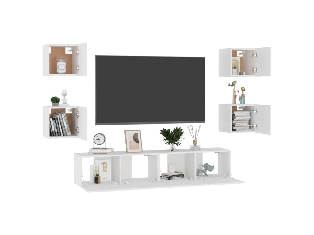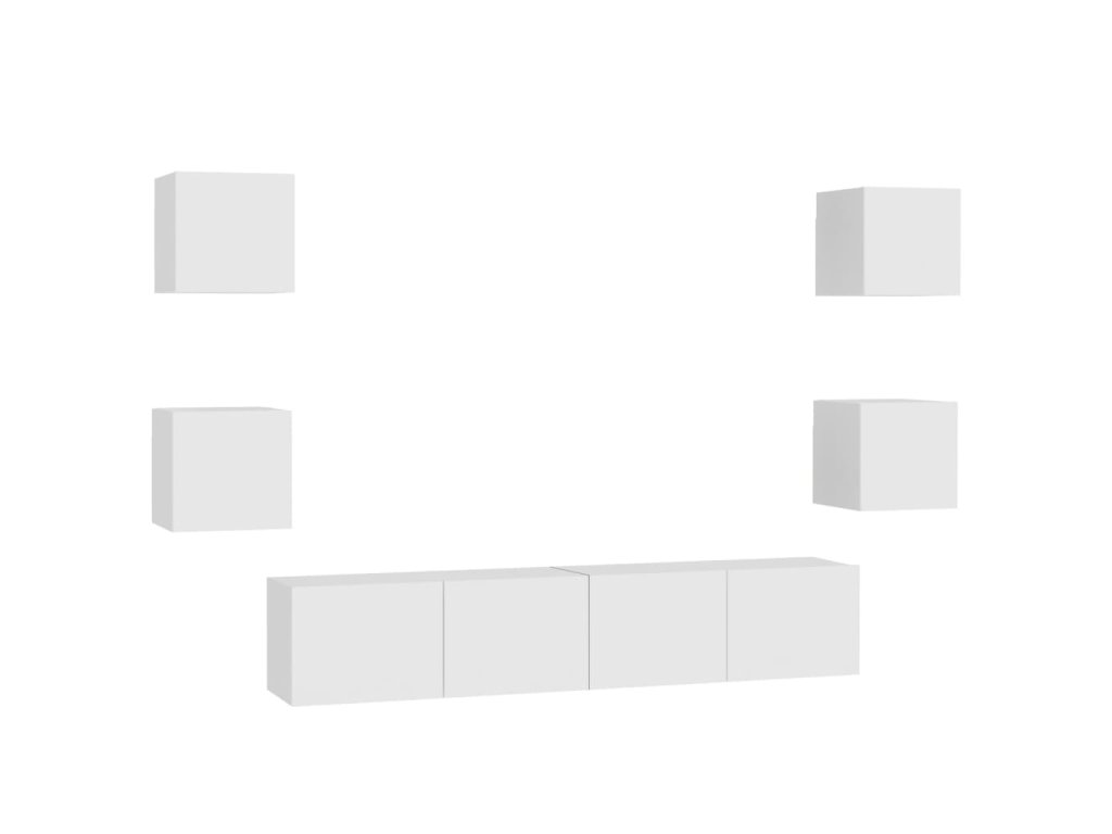 vidaXL 6-dielna súprava TV skriniek, biela, kompozitné drevo