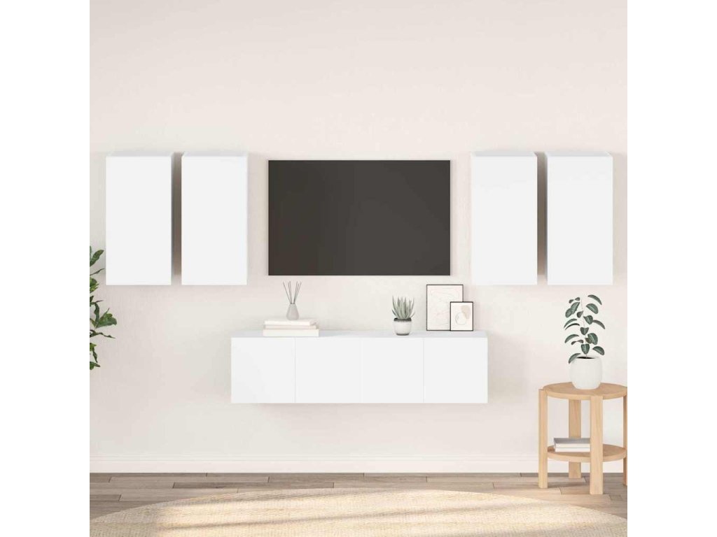 vidaXL 6-dielna súprava TV skriniek, biela, kompozitné drevo