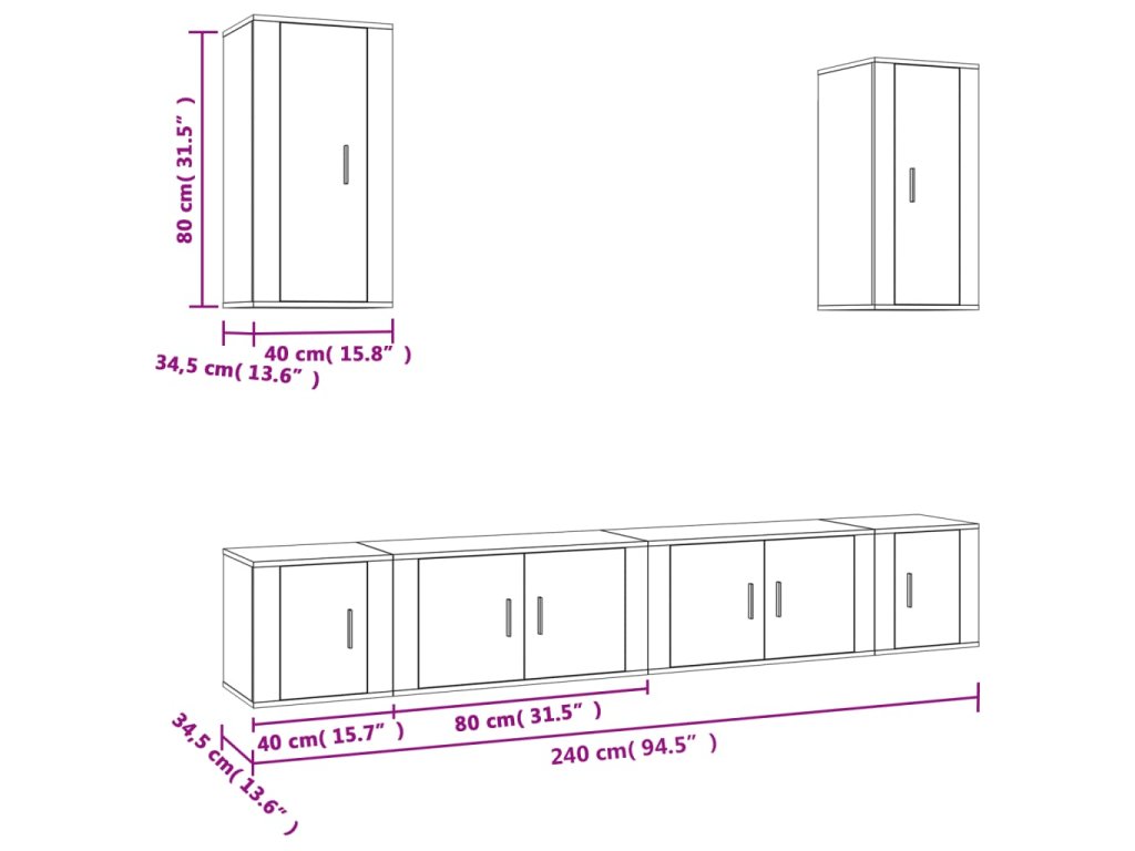 - 2 x TV skrinka: 40 x 34,5 x 80 cm (D x Š x V)
