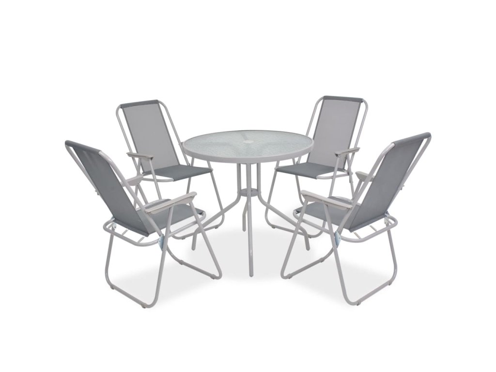 - Balenie obsahuje: 4 stoličky, 1 stolík a 1 slnečník