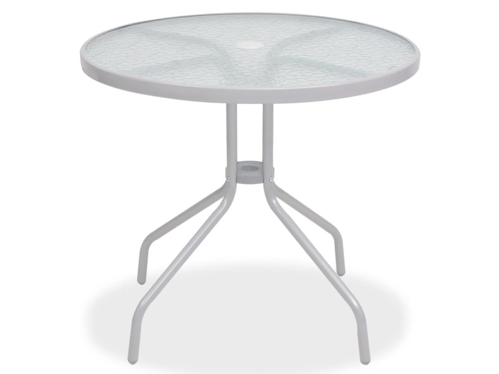 Pohodlné stoličky sú vyrobené z kvalitnej práškovanej ocele. Vďaka pevným sedadlám a operadlám z textilénu sú naše stoličky veľmi pohodlné a odolné voči vplyvom počasia. Stôl má veľký, robustný a ľahko čistiteľný vrch z tvrdeného skla s dekoratívnou textúrou vlniek. Súčasťou súpravy je aj slnečník, ktorý vás ochráni pred slnkom. Stoličky sú stohovateľné, aby ušetrili miesto, keď sa nepoužívajú. Montáž je jednoduchá.