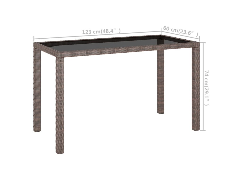 Táto ratanová jedálenská súprava s elegantným dizajnom bude skvelou voľbou pre večere na čerstvom vzduchu či relax na záhrade. Vďaka oceľovým rámom s práškovaným povrchom sú stôl, lavička, stoličky a taburetky pevné a robustné. Vďaka ich ľahkej konštrukcii je možné všetky časti súpravy jednoducho presúvať. Polyratan je odolný voči vode a vplyvom počasia a tak sa táto jedálenská súprava ľahko čistí. Sklenený povrch stola sa taktiež jednoducho čistí pomocou navlhčenej handričky.