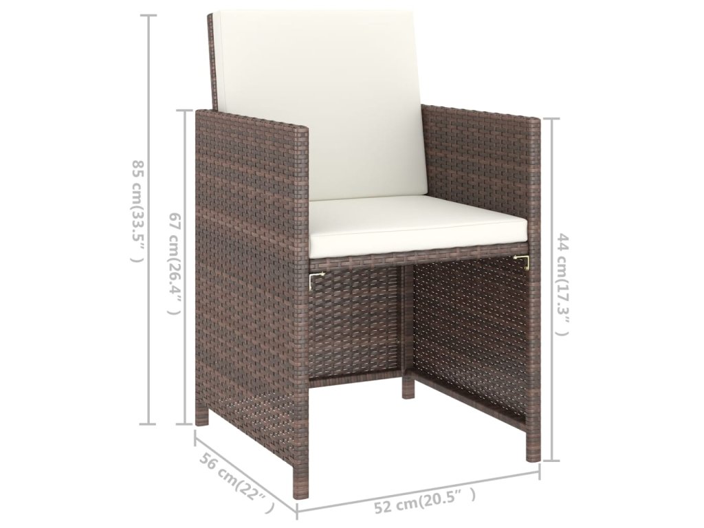 vidaXL 6-dielna vonkajšia jedálenská súprava s vankúšmi polyratanová hnedá