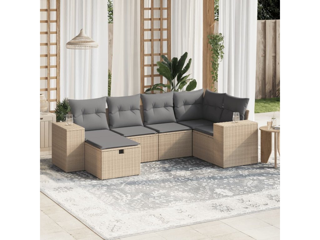 vidaXL 6-dielna záhr.sedacia súprava s vankúšmi mix béžovej polyratan