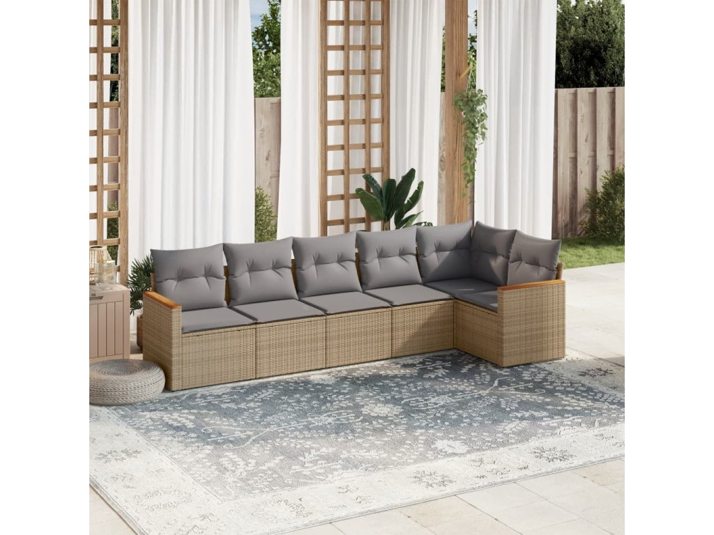 vidaXL 6-dielna záhr.sedacia súprava s vankúšmi mix béžovej polyratan