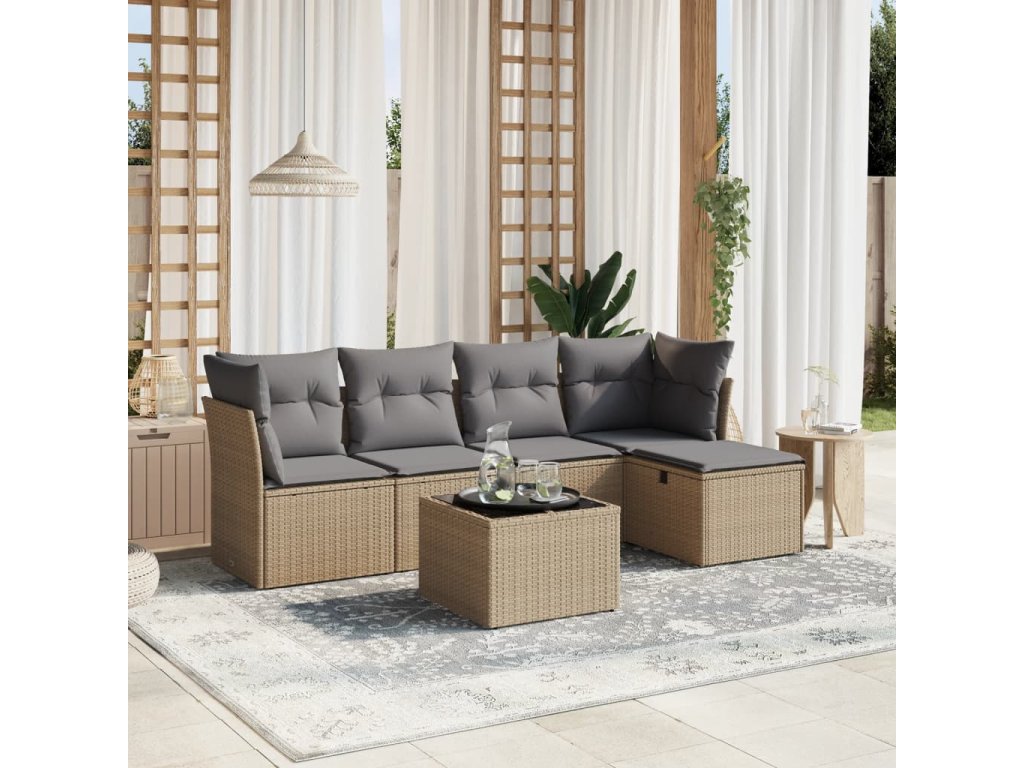 vidaXL 6-dielna záhr.sedacia súprava s vankúšmi mix béžovej polyratan