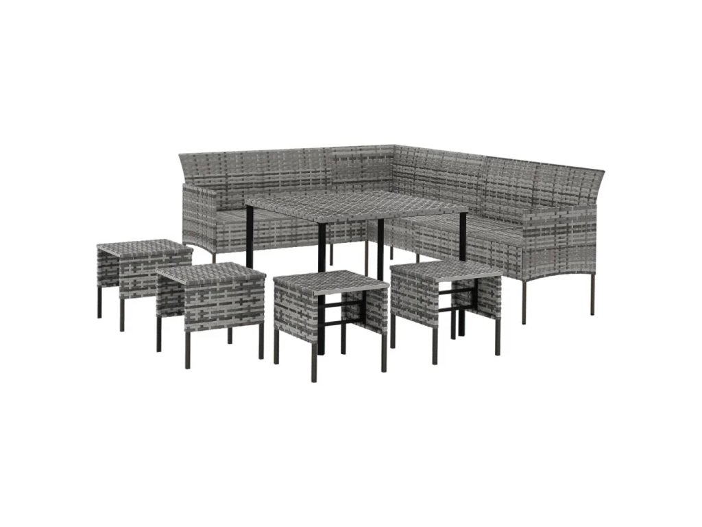 vidaXL 6-dielna záhradná jedálenská súprava a vankúše polyratan sivá