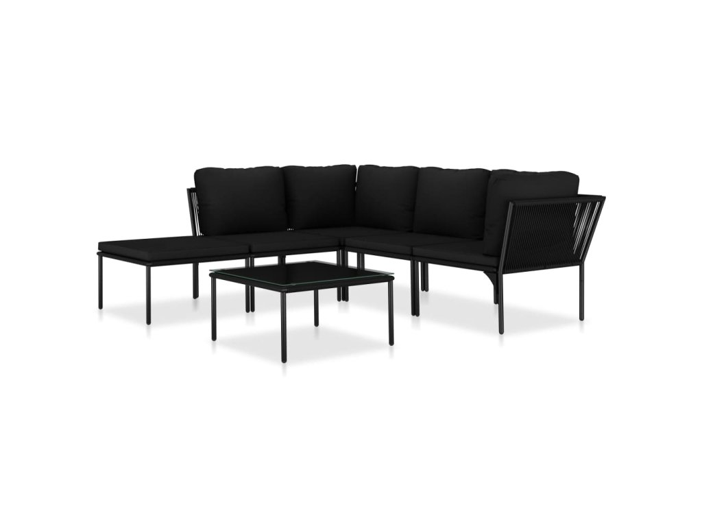 vidaXL 6-dielna záhradná sedacia súprava s podložkami, čierna, PVC