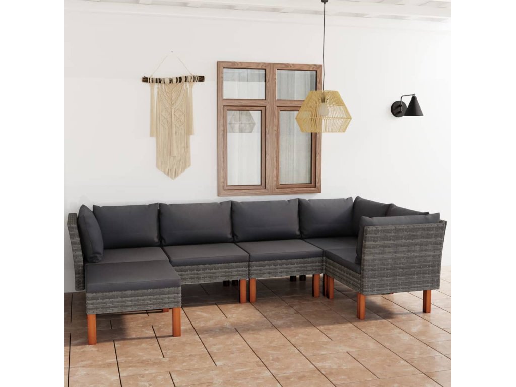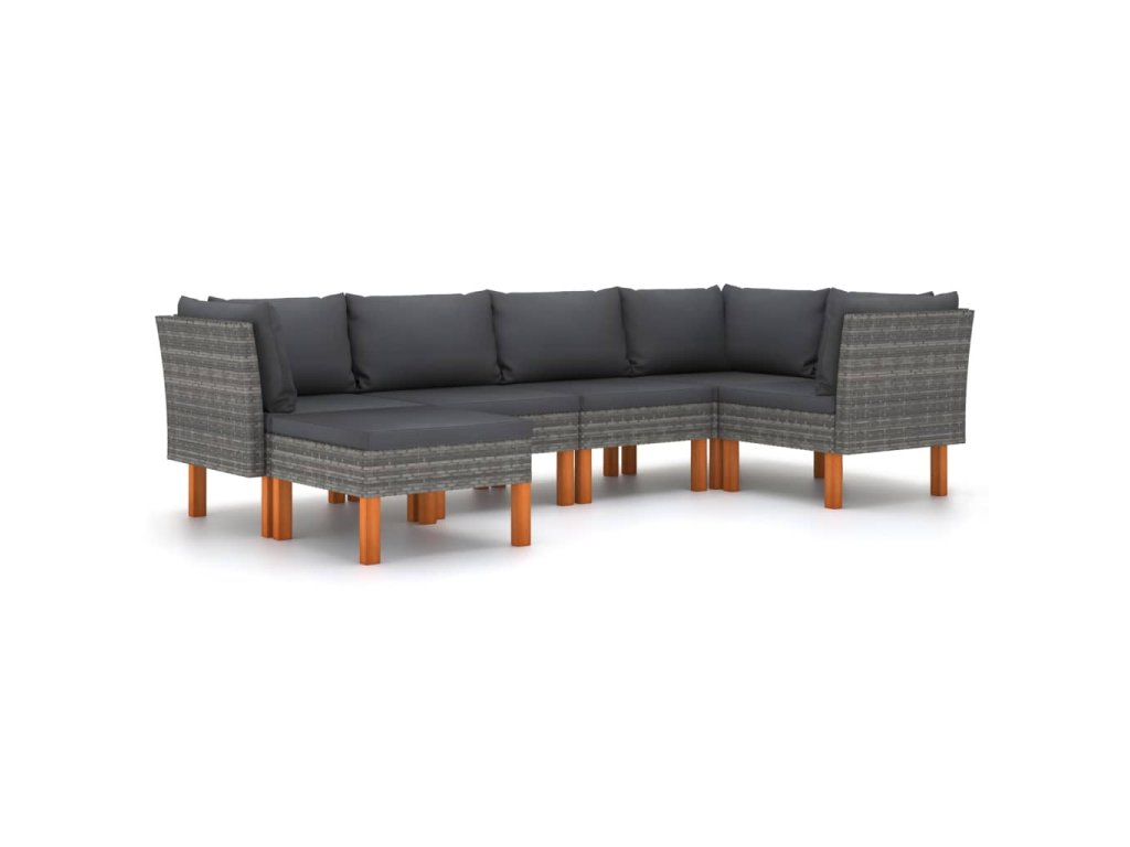 vidaXL 6-dielna záhradná sedacia súprava s podložkami polyratan sivá