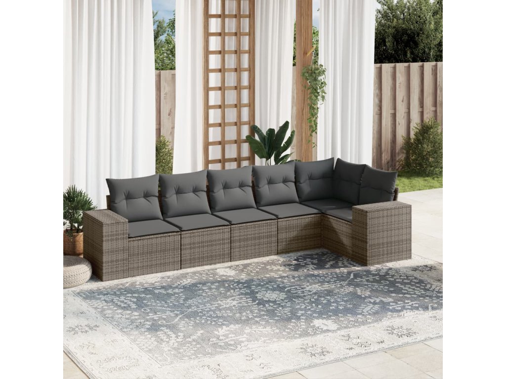 vidaXL 6-dielna záhradná sedacia súprava s podložkami polyratan sivá