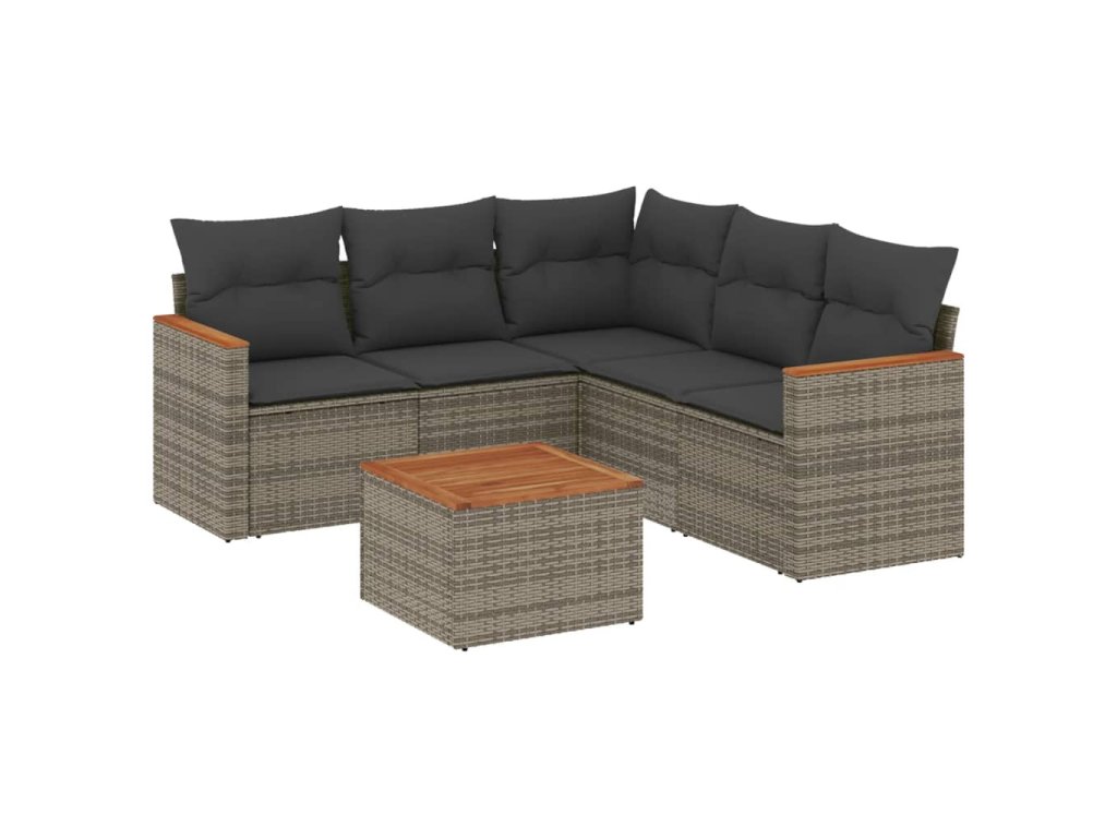 vidaXL 6-dielna záhradná sedacia súprava s podložkami polyratan sivá
