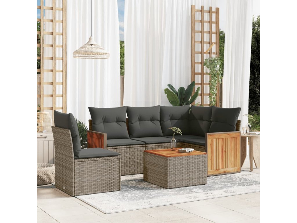 vidaXL 6-dielna záhradná sedacia súprava s podložkami polyratan sivá