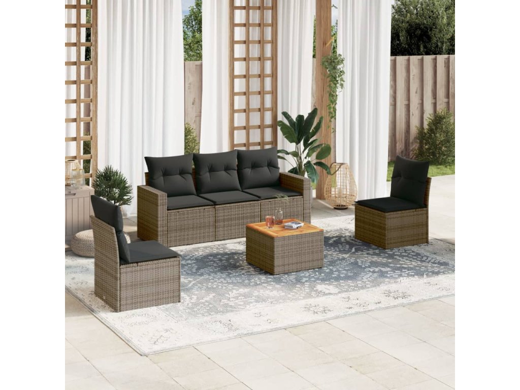 vidaXL 6-dielna záhradná sedacia súprava s podložkami polyratan sivá