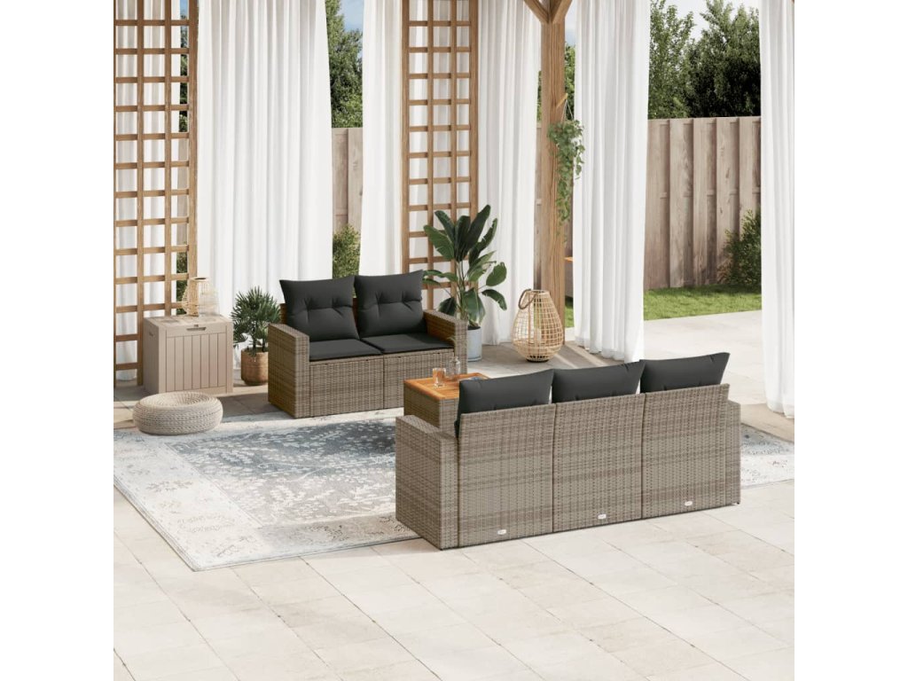vidaXL 6-dielna záhradná sedacia súprava s podložkami polyratan sivá