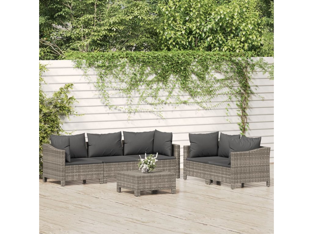 vidaXL 6-dielna záhradná sedacia súprava s podložkami polyratan sivá