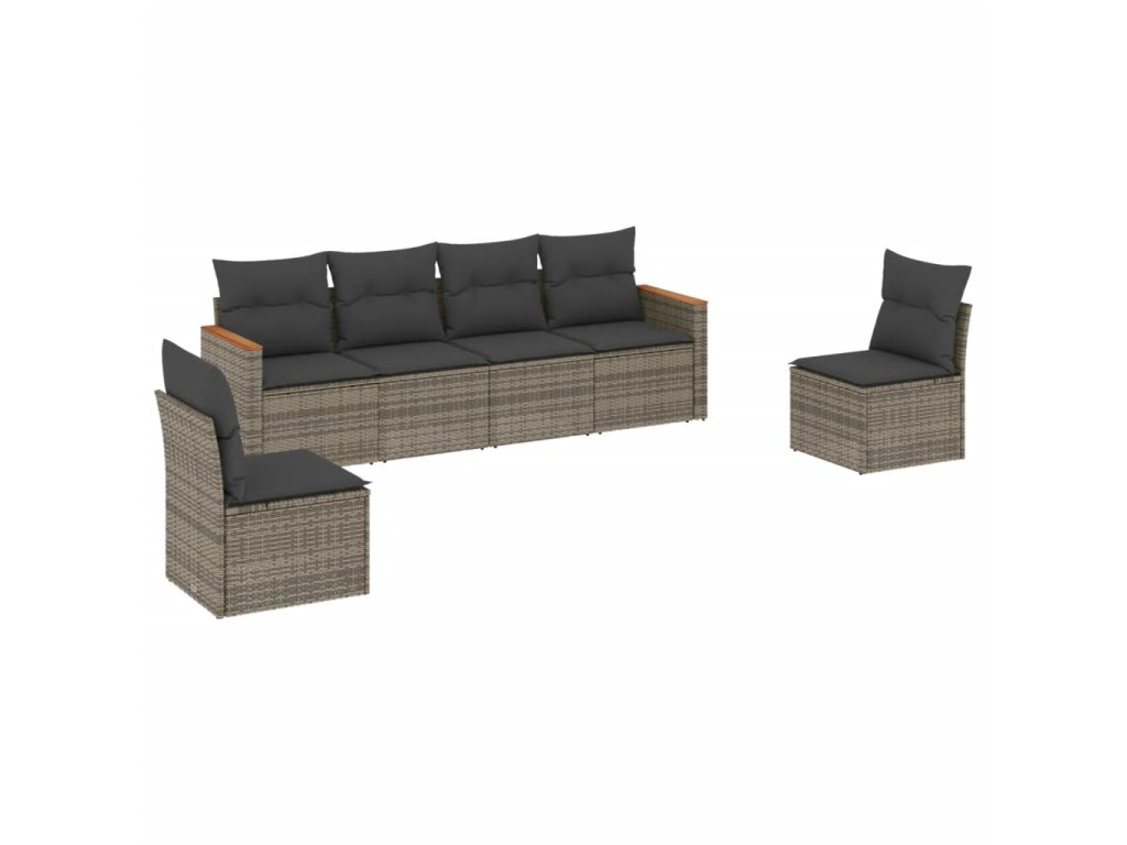 vidaXL 6-dielna záhradná sedacia súprava s podložkami polyratan sivá