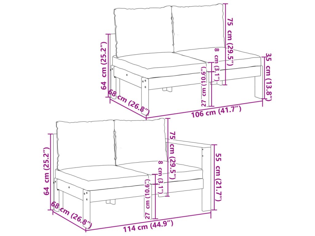 - Výška sedadla od zeme (bez vankúšov): 27 cm