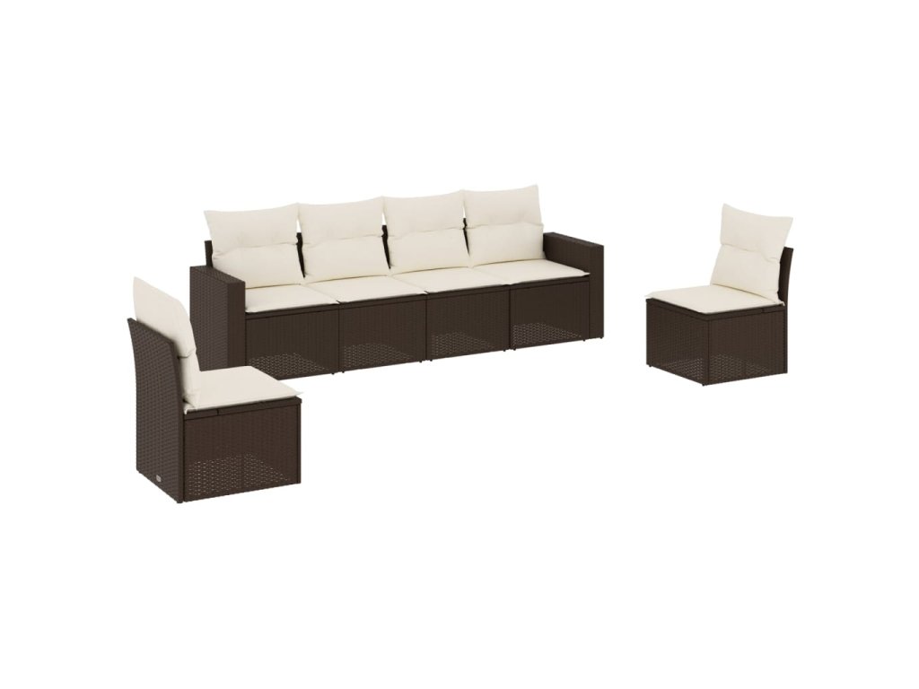 vidaXL 6-dielna záhradná sedacia súprava s vankúšmi hnedá polyratanová