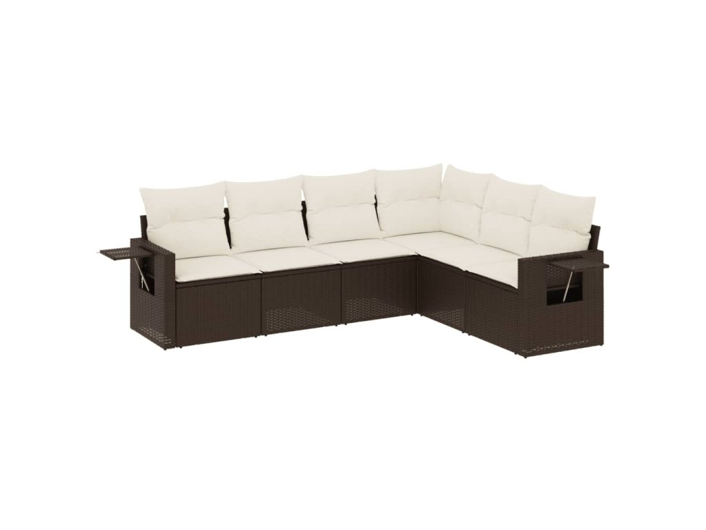 vidaXL 6-dielna záhradná sedacia súprava s vankúšmi hnedá polyratanová