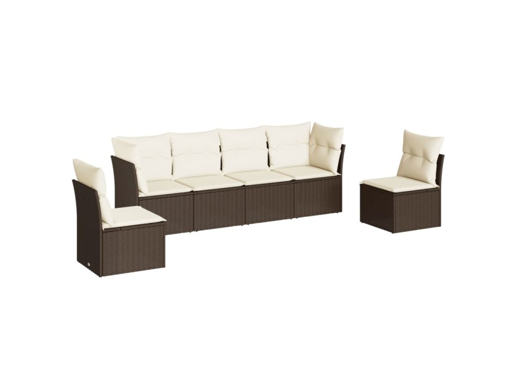 vidaXL 6-dielna záhradná sedacia súprava s vankúšmi hnedá polyratanová