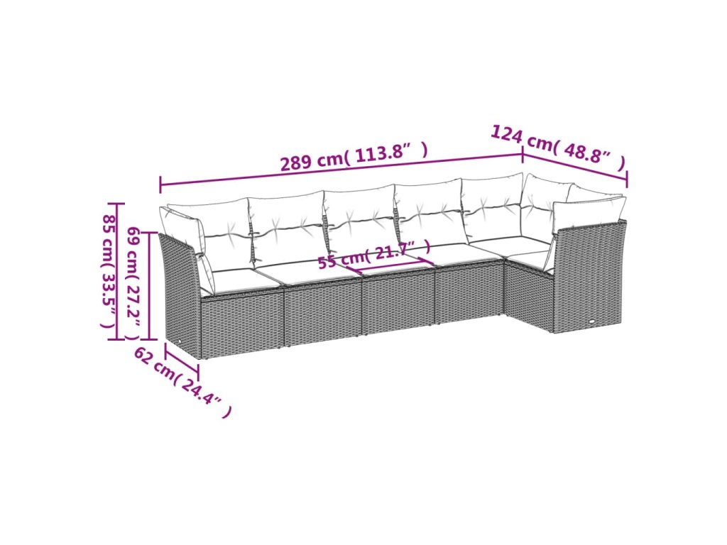 vidaXL 6-dielna záhradná sedacia súprava s vankúšmi hnedá polyratanová