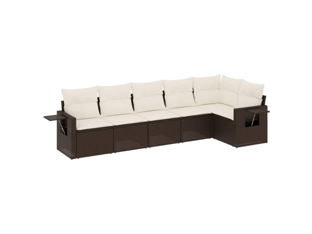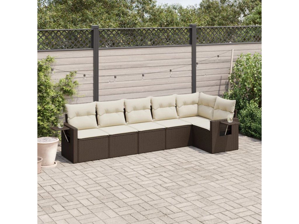 vidaXL 6-dielna záhradná sedacia súprava s vankúšmi hnedá polyratanová