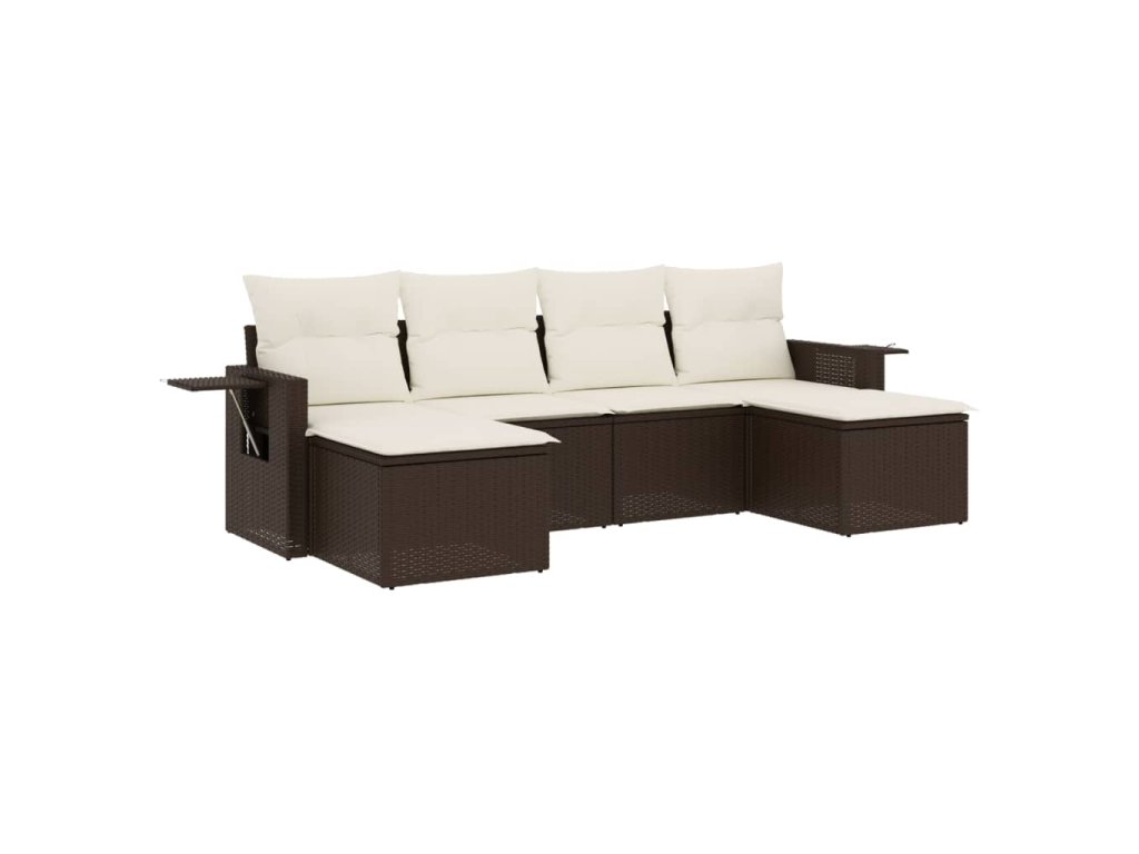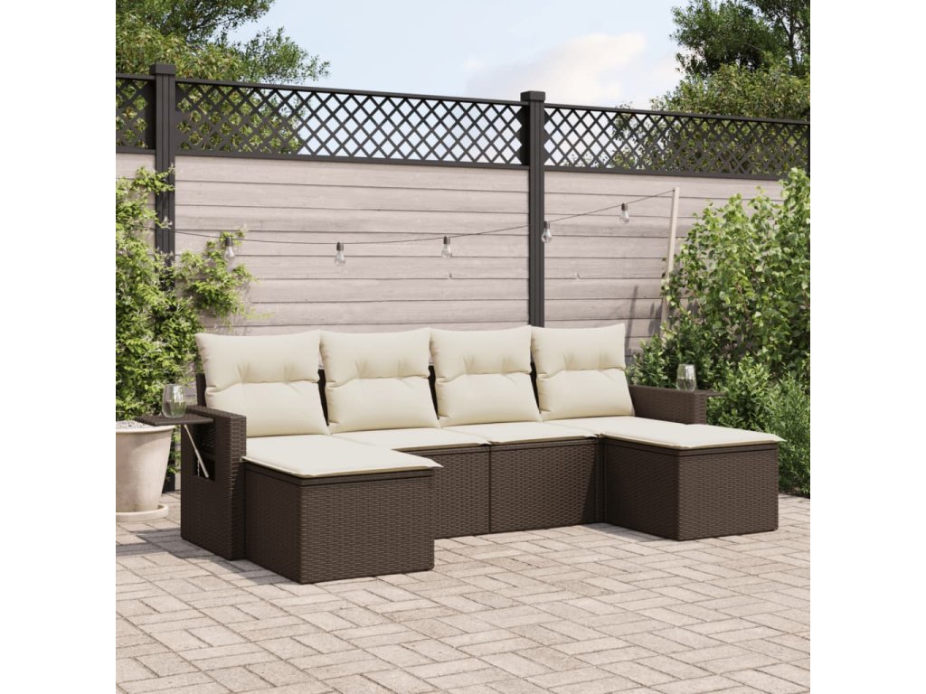 vidaXL 6-dielna záhradná sedacia súprava s vankúšmi hnedá polyratanová