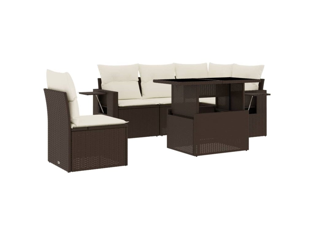 vidaXL 6-dielna záhradná sedacia súprava s vankúšmi hnedá polyratanová