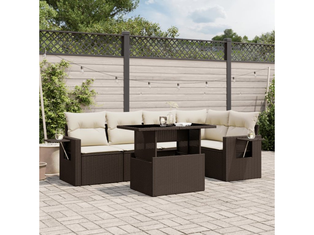 vidaXL 6-dielna záhradná sedacia súprava s vankúšmi hnedá polyratanová