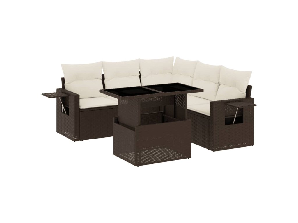 vidaXL 6-dielna záhradná sedacia súprava s vankúšmi hnedá polyratanová