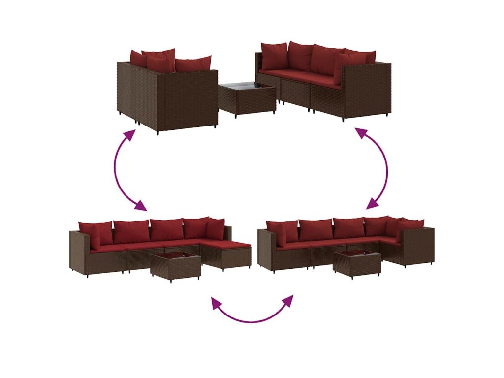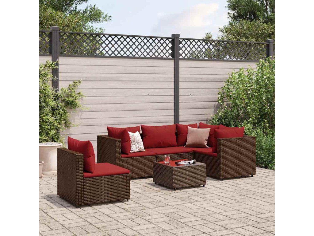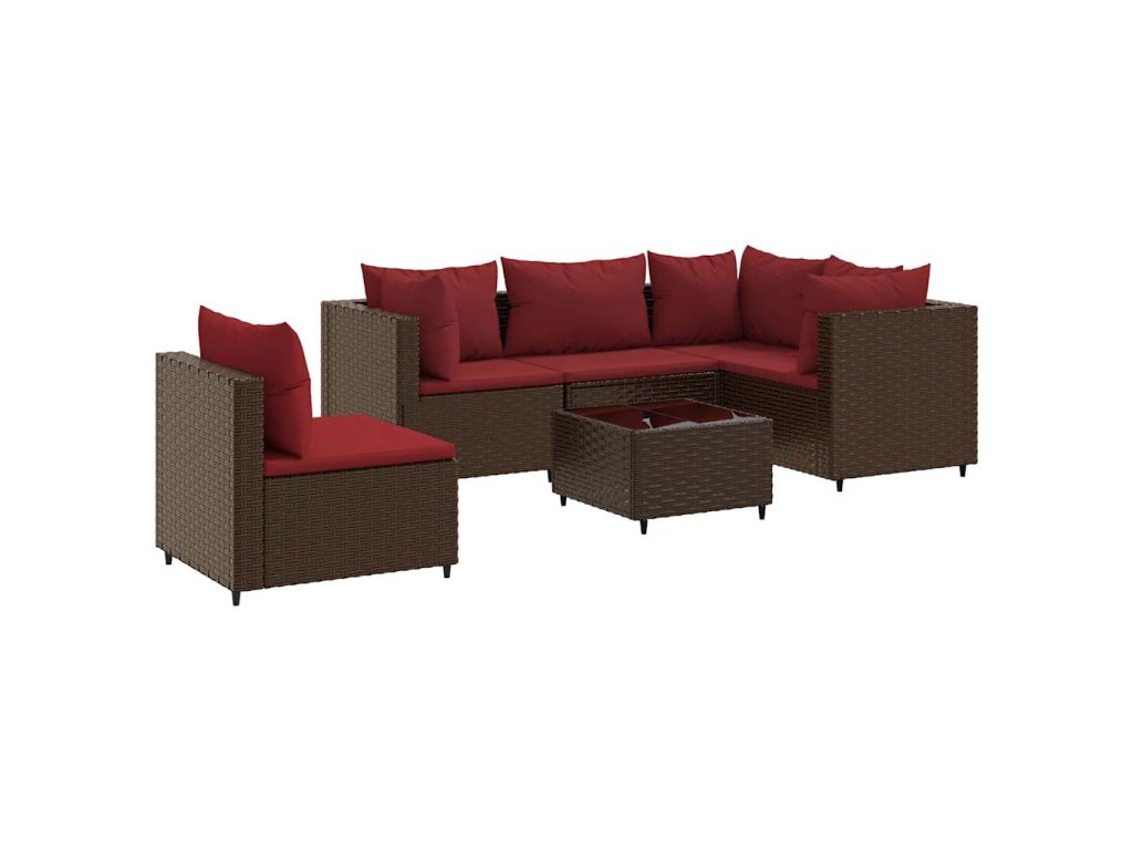 vidaXL 6-dielna záhradná sedacia súprava s vankúšmi hnedá polyratanová