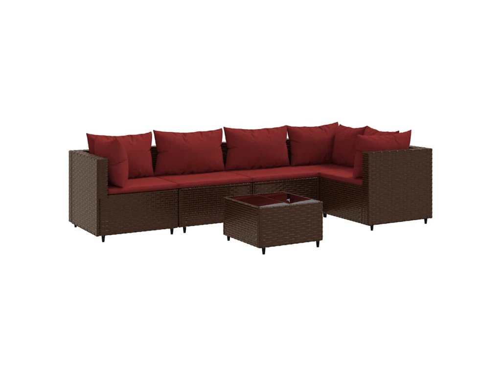 vidaXL 6-dielna záhradná sedacia súprava s vankúšmi hnedá polyratanová