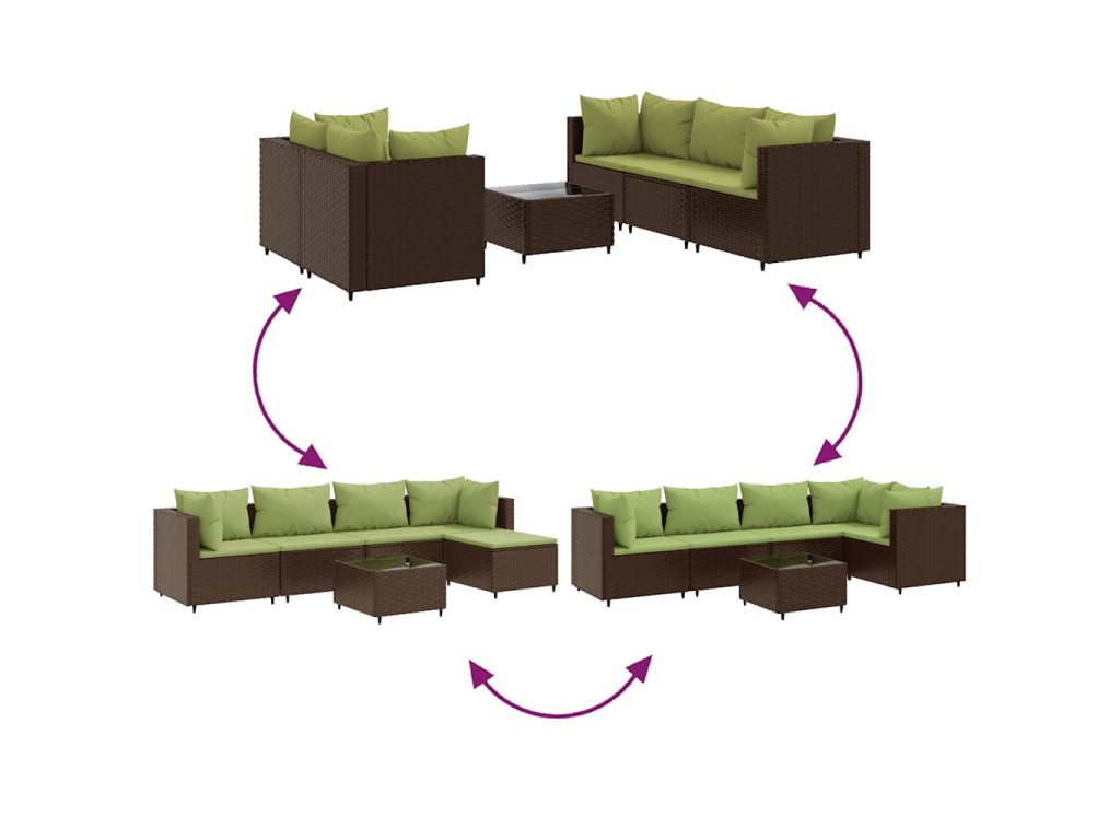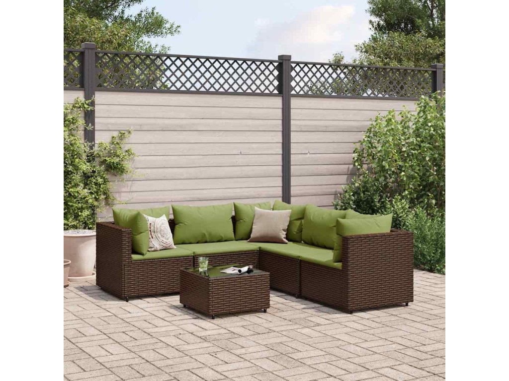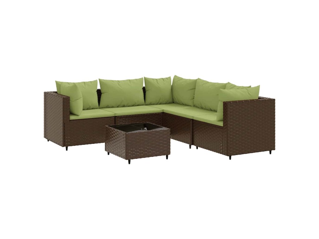 vidaXL 6-dielna záhradná sedacia súprava s vankúšmi hnedá polyratanová