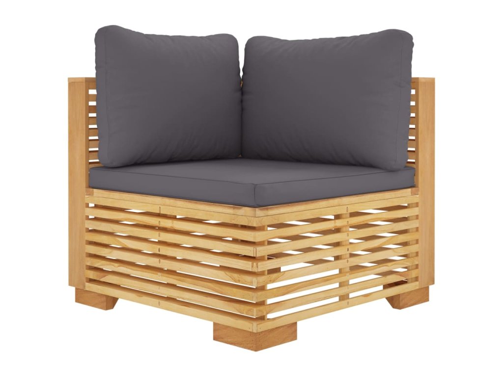 - Masívne teakové drevo: Masívne teakové drevo je krásny prírodný materiál. Bolo vyzreté, umelo vysušené a jemne obrúsené, čo mu dalo veľmi hladký vzhľad. Teakové drevo je známe svojou výnimočnou pevnosťou a odolnosťou voči poveternostným vplyvom.