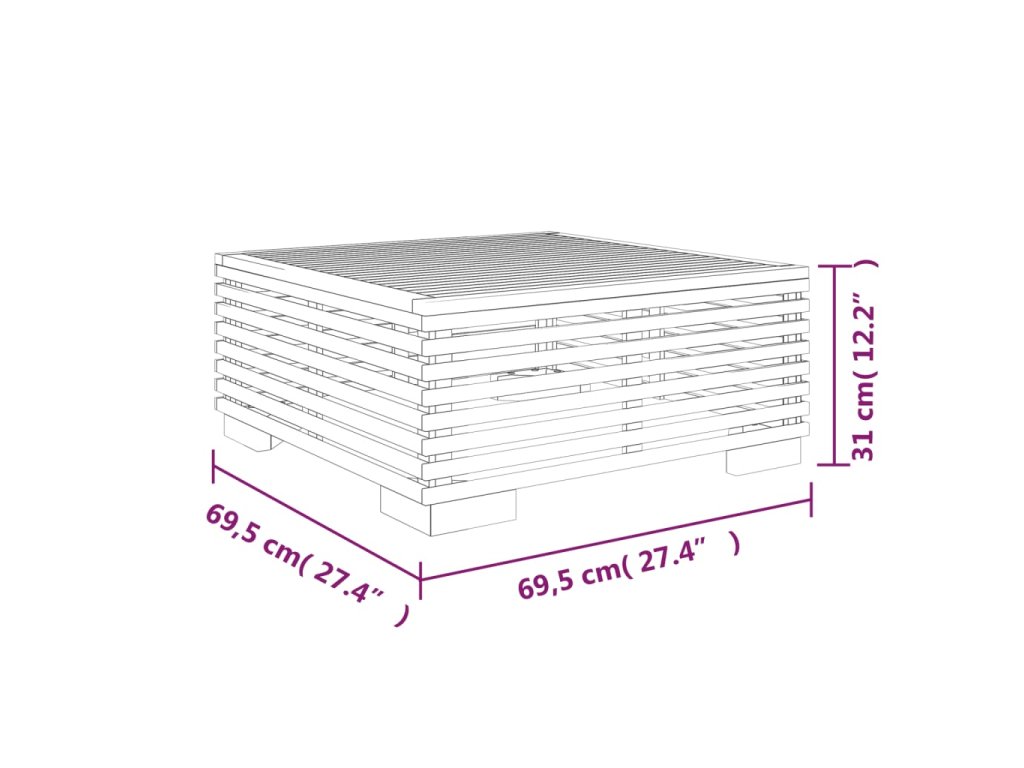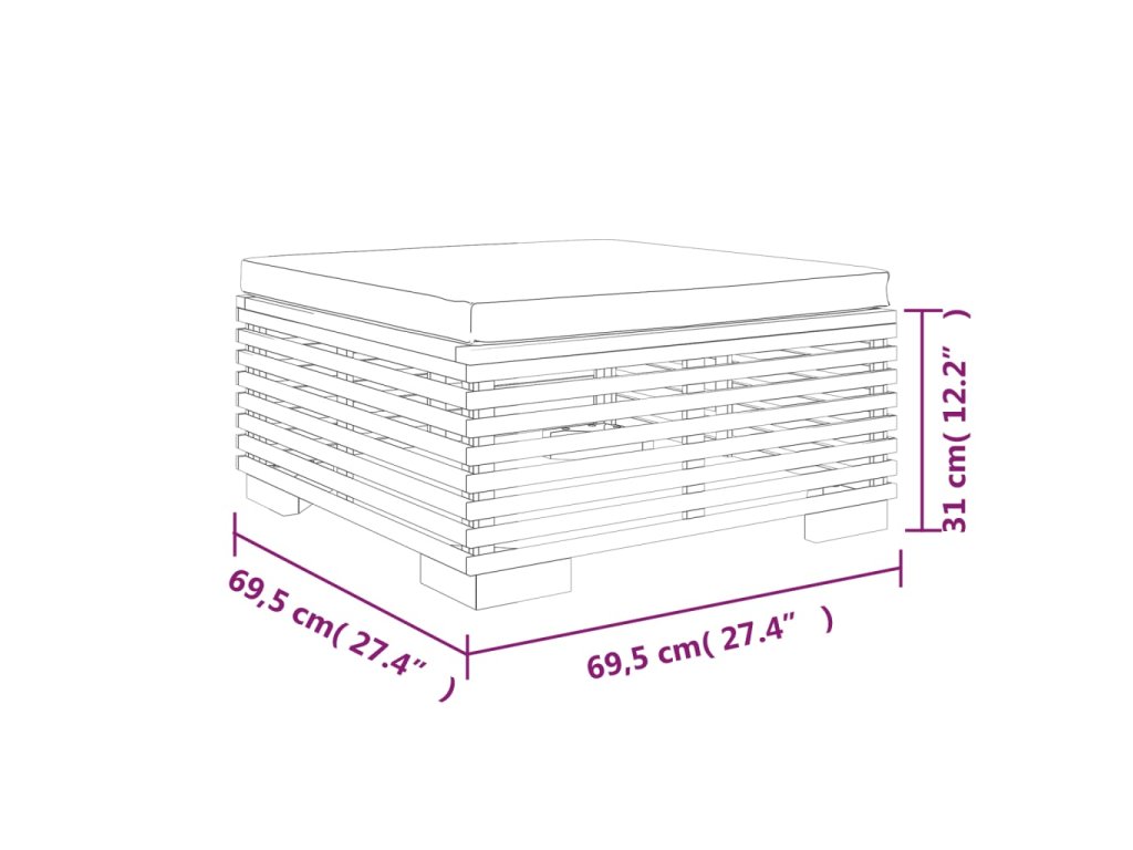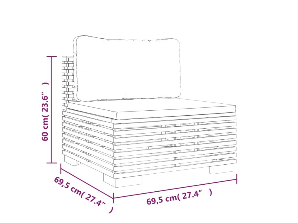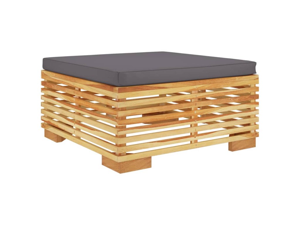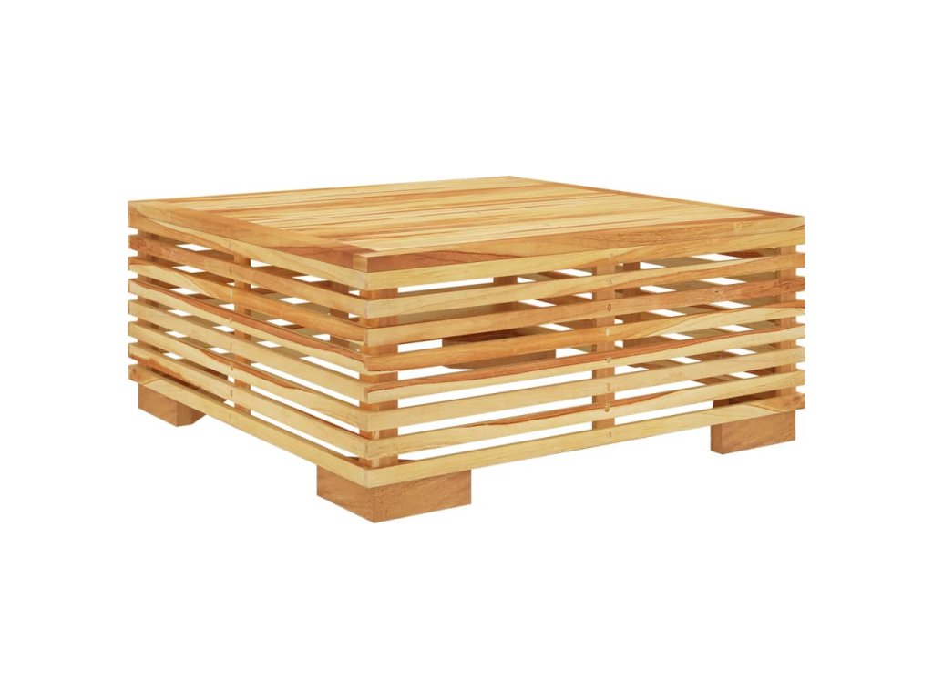 - Masívne teakové drevo: Masívne teakové drevo je krásny prírodný materiál. Bolo vyzreté, umelo vysušené a jemne obrúsené, čo mu dalo veľmi hladký vzhľad. Teakové drevo je známe svojou výnimočnou pevnosťou a odolnosťou voči poveternostným vplyvom.