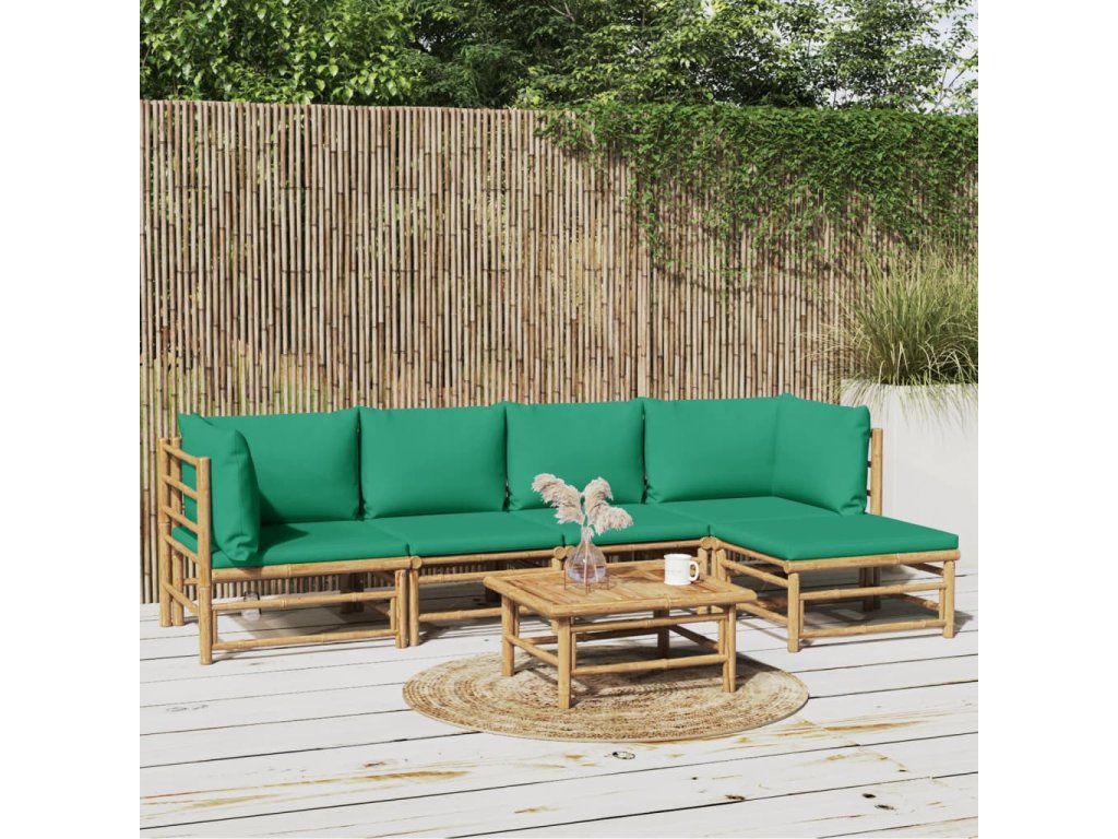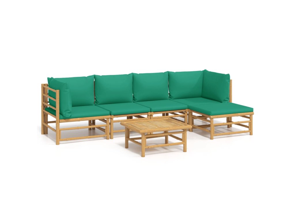 vidaXL 6-dielna záhradná sedacia súprava zelené vankúše bambus