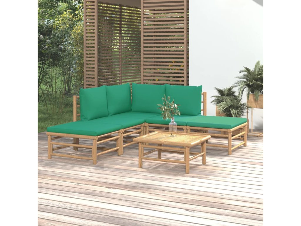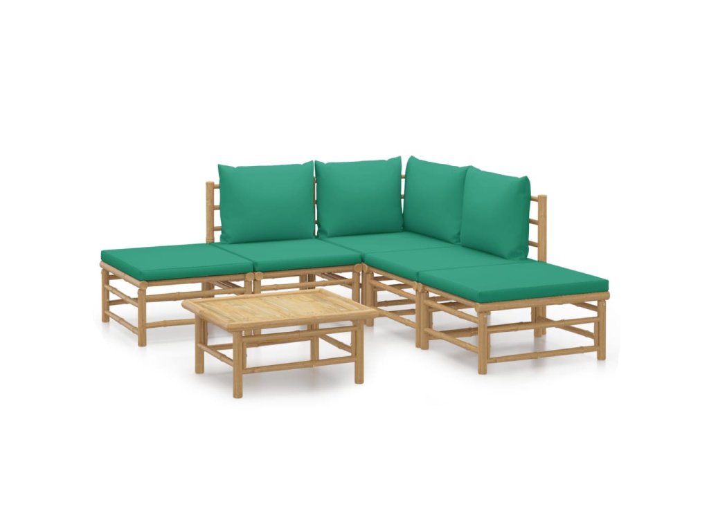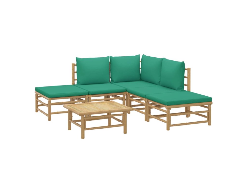 vidaXL 6-dielna záhradná sedacia súprava zelené vankúše bambus