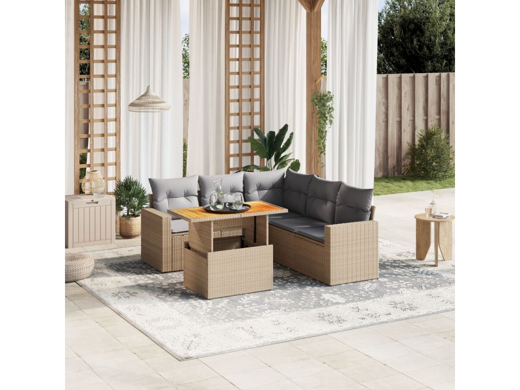 vidaXL 6-dielna záhradná súprava pohoviek s vankúšmi béžová polyratan