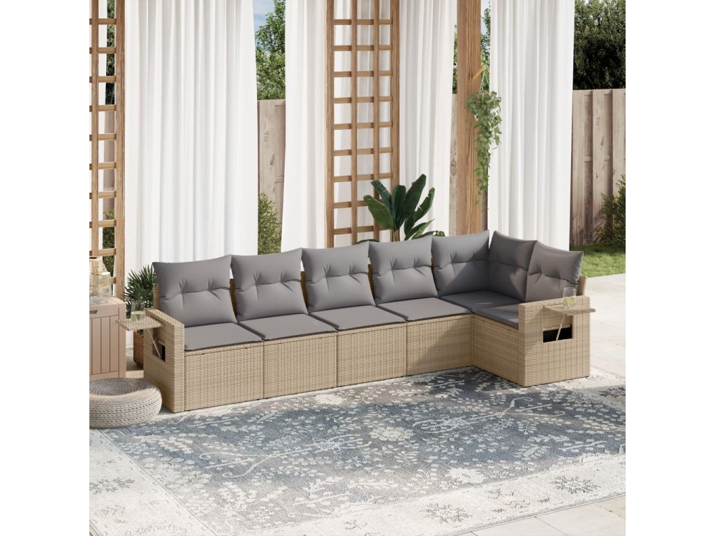 vidaXL 6-dielna záhradná súprava pohoviek s vankúšmi béžová polyratan